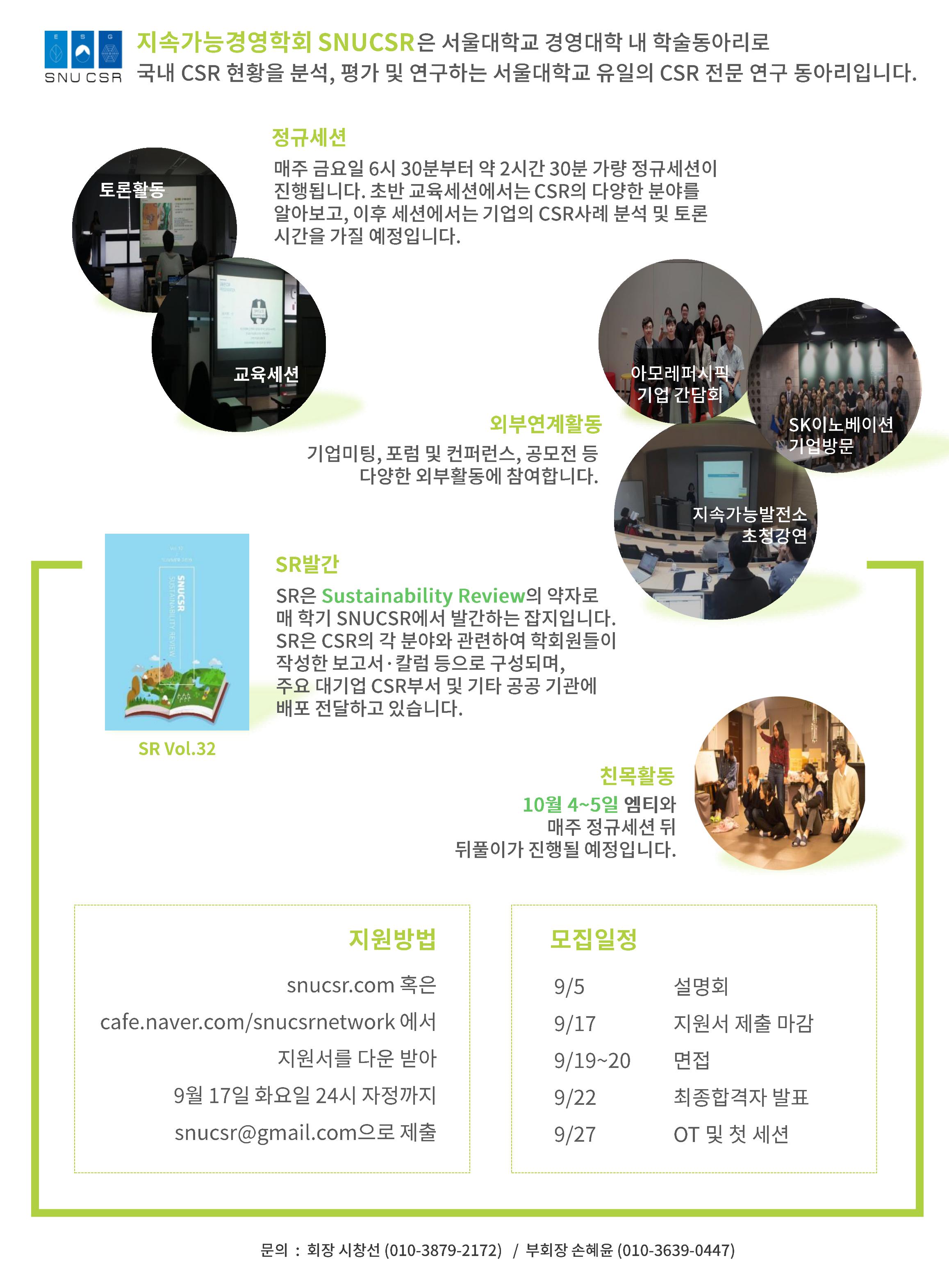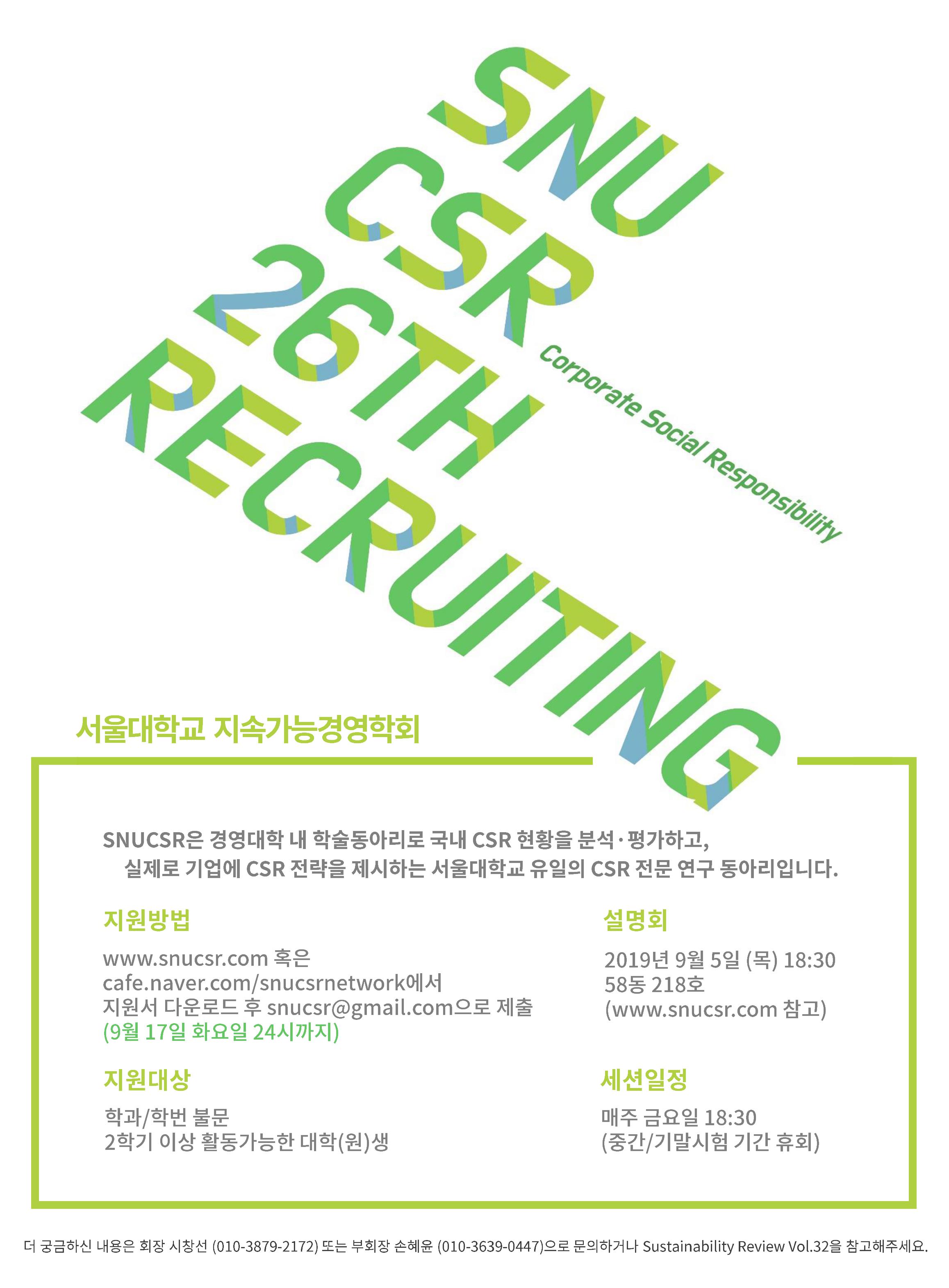 SNUCSR Network에서 가을학기 신입회원을 모집합니다!