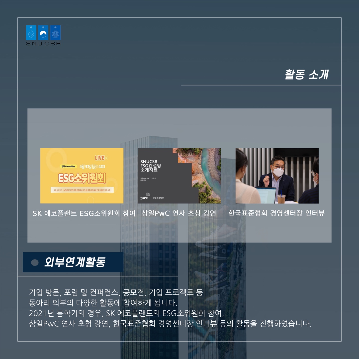 학회 공식 카페 : cafe.naver.com/snucsrnetwork