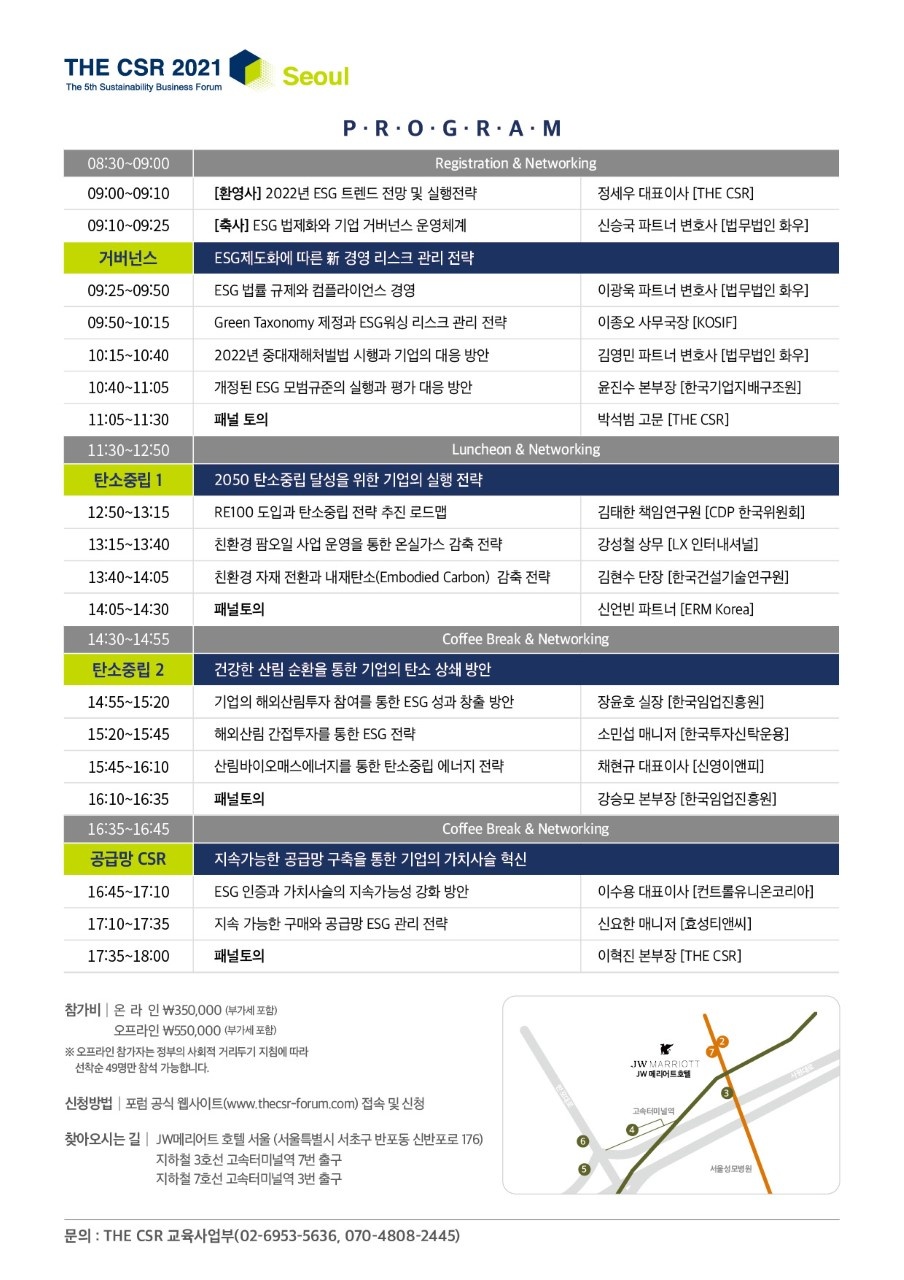 § 참가 등록 신청을 포함한 자세한 정보는 https://thecsr-forum.com/ 더씨에스알포럼을 참조해주세요! (11월 1일 등록 마감)