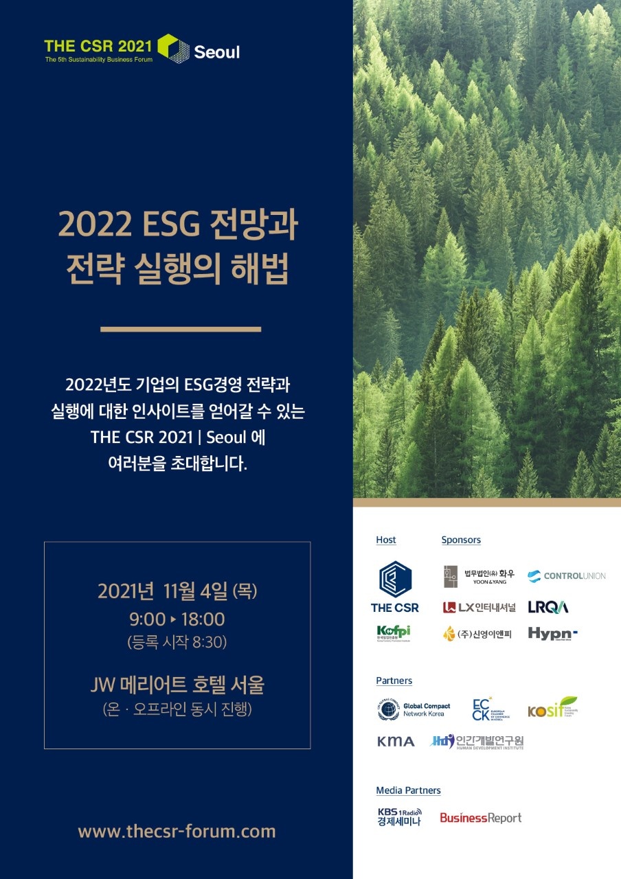 제5회 지속가능경영 비즈니스포럼 『THE CSR 2021 | Seoul』에 SNUCSR의 29기&30기 학회원이 참석합니다!