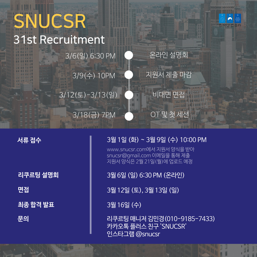 | [2022-1] 두 번째 카드뉴스: Why SNUCSR? (0) | 2022.02.27 |