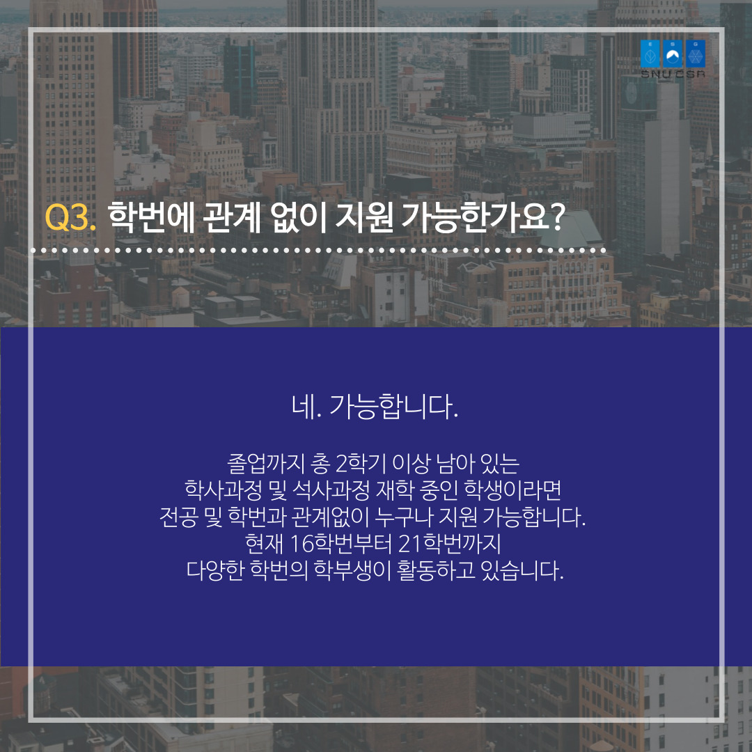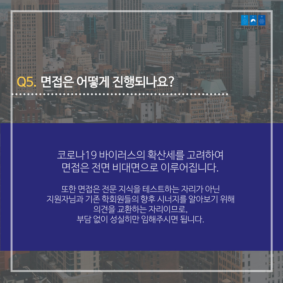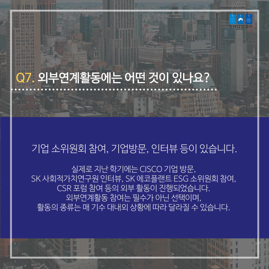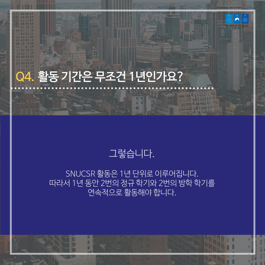 SNUCSR의 활동, 지원자격, 면접 등이 궁금하셨다면 카드뉴스를 통해 확인해주세요.
