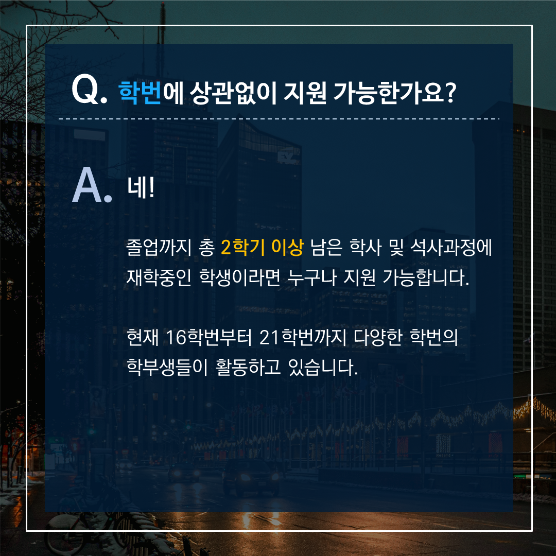 ✅ 모집대상 : 학과, 학번 불문 최소 1년 연속 활동(계절학기 포함)이 가능한 서울대학교 소속 대학(원)생