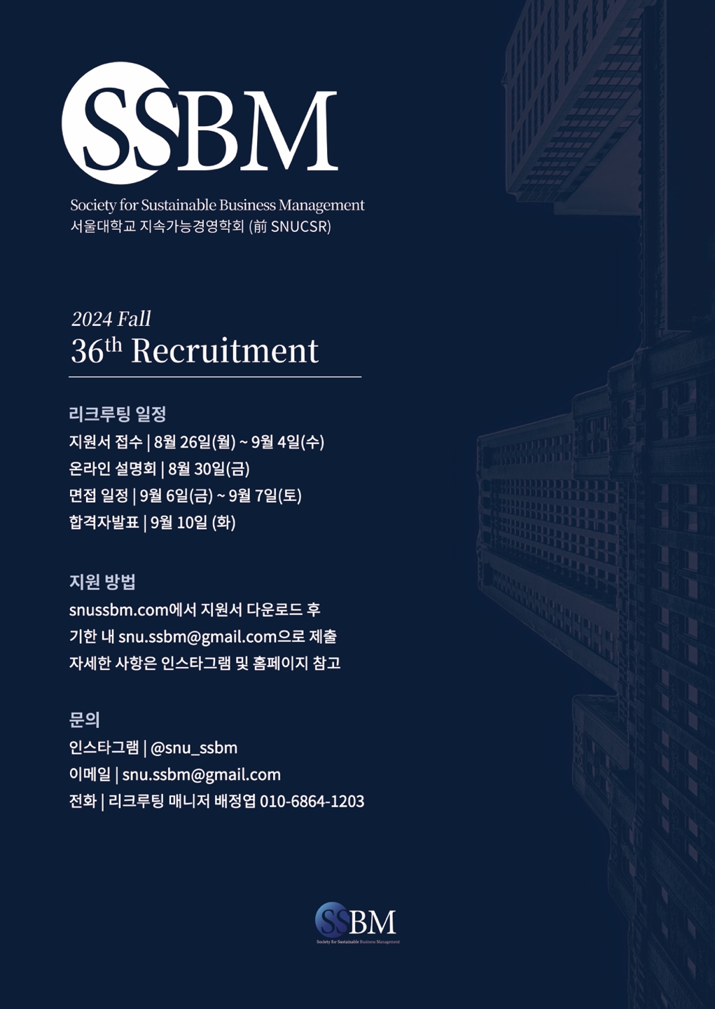 ** 지원서는 9월 4일 수요일 오후 6시까지 snu.ssbm@gmail.com으로 제출해주시기 바랍니다.**
