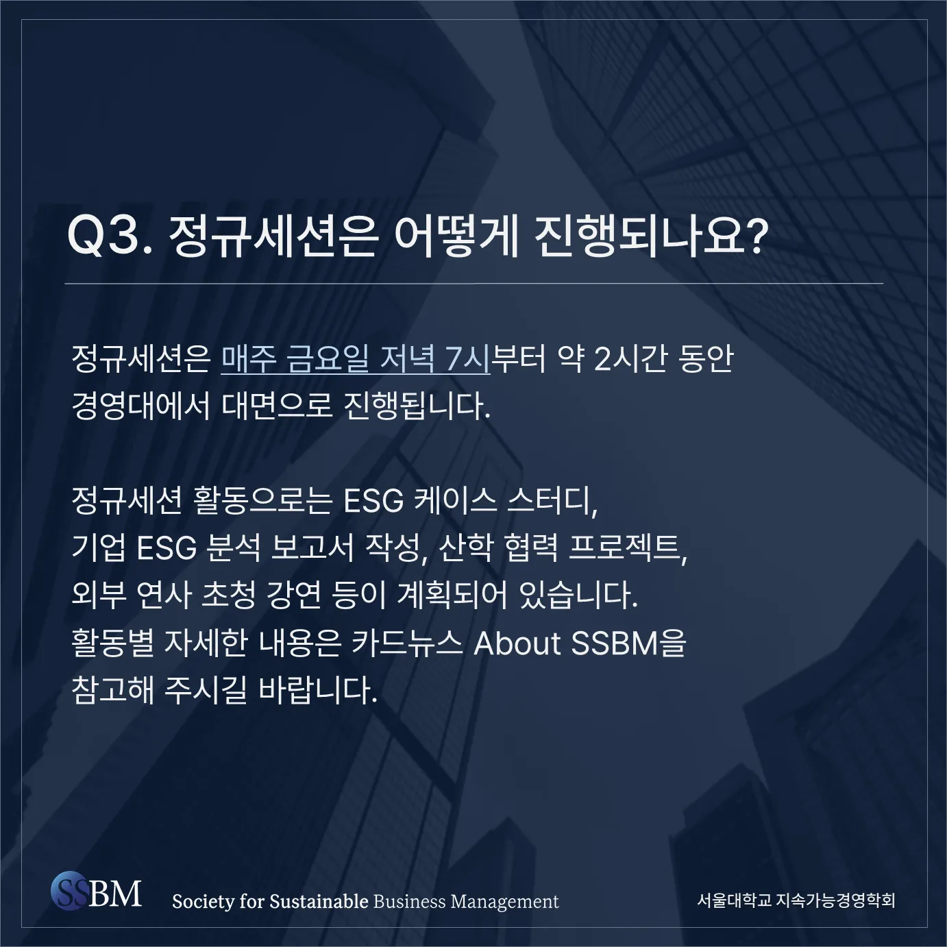 📍학회 활동에 대한 더욱 자세한 소개는 이전 ‘Part 1. About SSBM’ 게시물을 참고해주시기 바랍니다!
