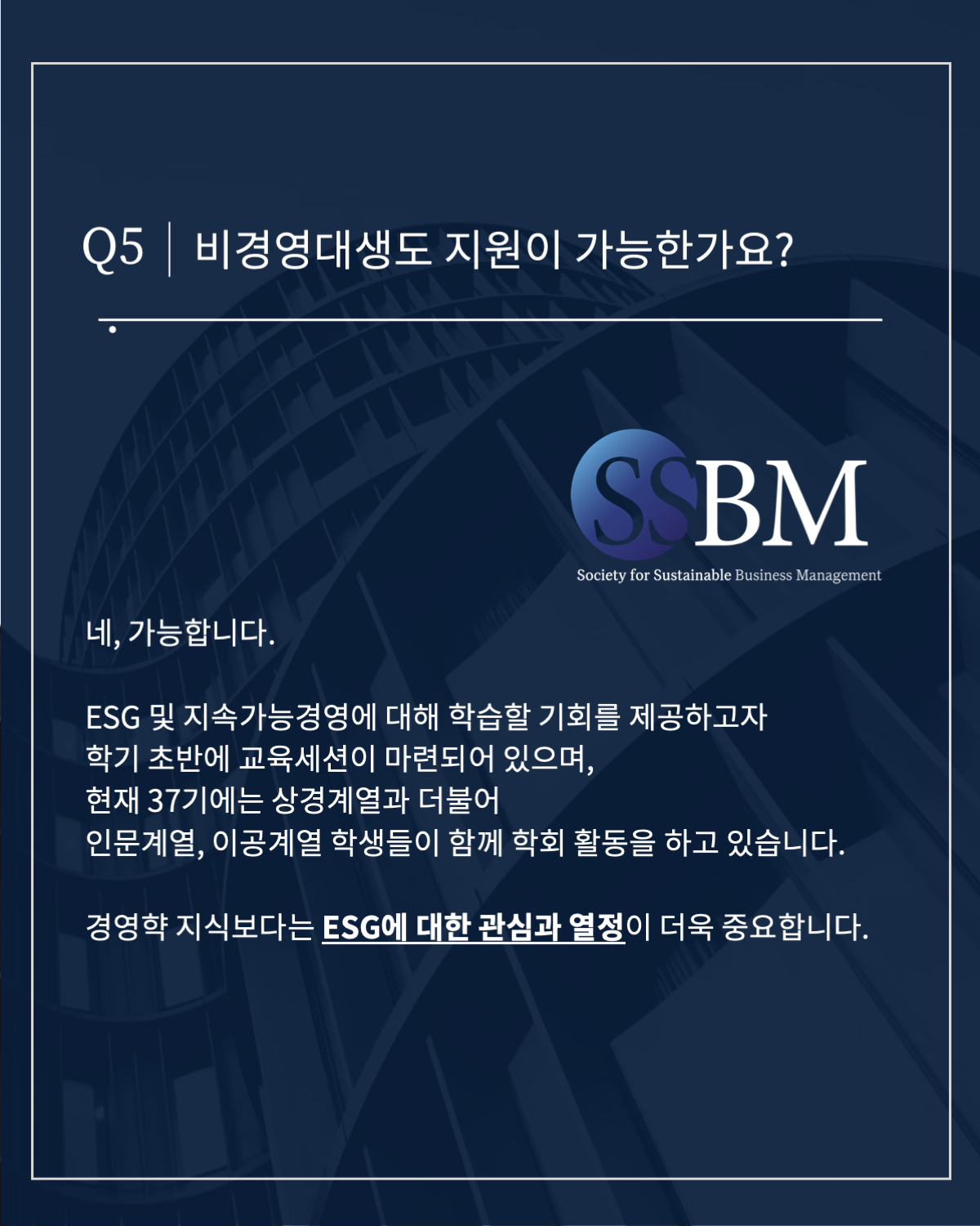 ✨FAQ✨ 서울대학교 지속가능경영학회 SSBM 38기 리크루팅