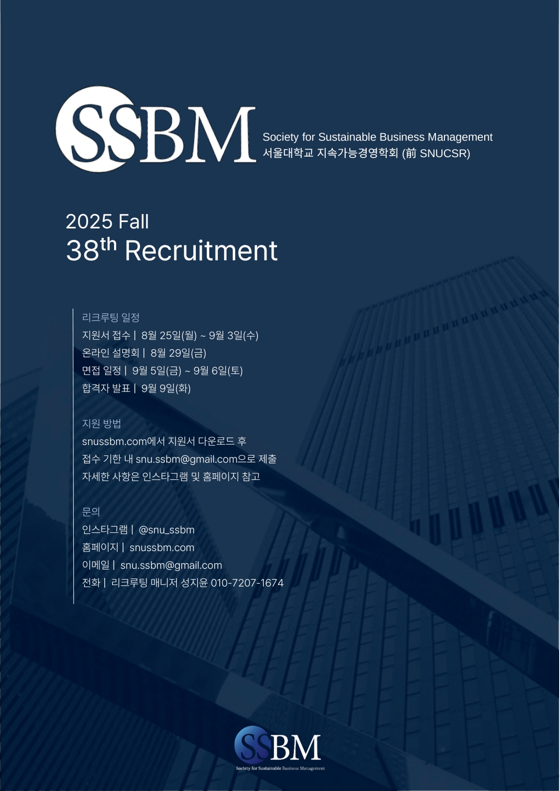 | [2025-2] SSBM 38기 리크루팅 카드뉴스 Part 1: About SSBM (0) | 2025.08.24 |