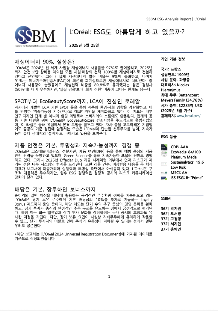 카테고리 없음 [2025-1] SSBM ESG 분석보고서_L'oréal by SSBM 2025. 8. 28. SSBM 기업 ESG 분석 보고서_L'Oréal.pdf 1.38MB 공유하기 게시글 관리 서울대학교 지속가능경영학회 SSBM 저작자표시 비영리 변경금지 (새창열림)
