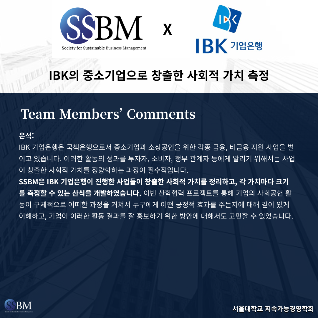 🔷 SSBM은 2006년 창립된 서울대학교 경영대학 소속 학술동아리로, 교내 유일의 ESG 및 CSR 전문 학회입니다. 특히 2023년 2학기부터는 CSR에서 ESG로 전환되고 있는 트렌드를 반영하여 ‘SNUCSR’에서 ‘SSBM’으로 학회명을 변경하여 활동하고 있습니다.